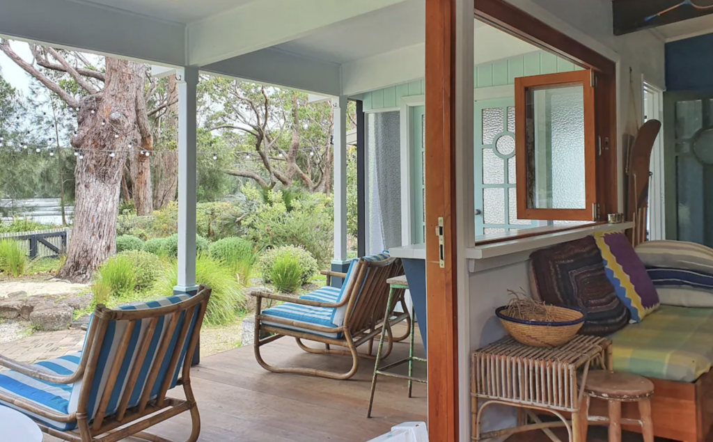 Designed by landscape architect Brendan Moar, this isn’t your typical beach house. It’s bold, colourful, and unapologetically fun. Mint greens, soft pinks, and pops of red create a space that feels joyful and alive. The shack opens up to embrace the lakeside garden, where natural light pours in and the view stretches out across the water.